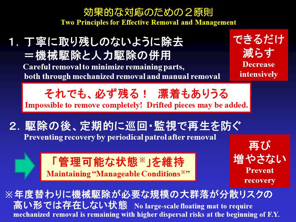 しかし大事なことは、機械に任せておくだけではだめだということです。機械でやるときも必ず人の手を使って丁寧に取り残しのないように取らないと、すぐに再生してしまうことが分かりました。