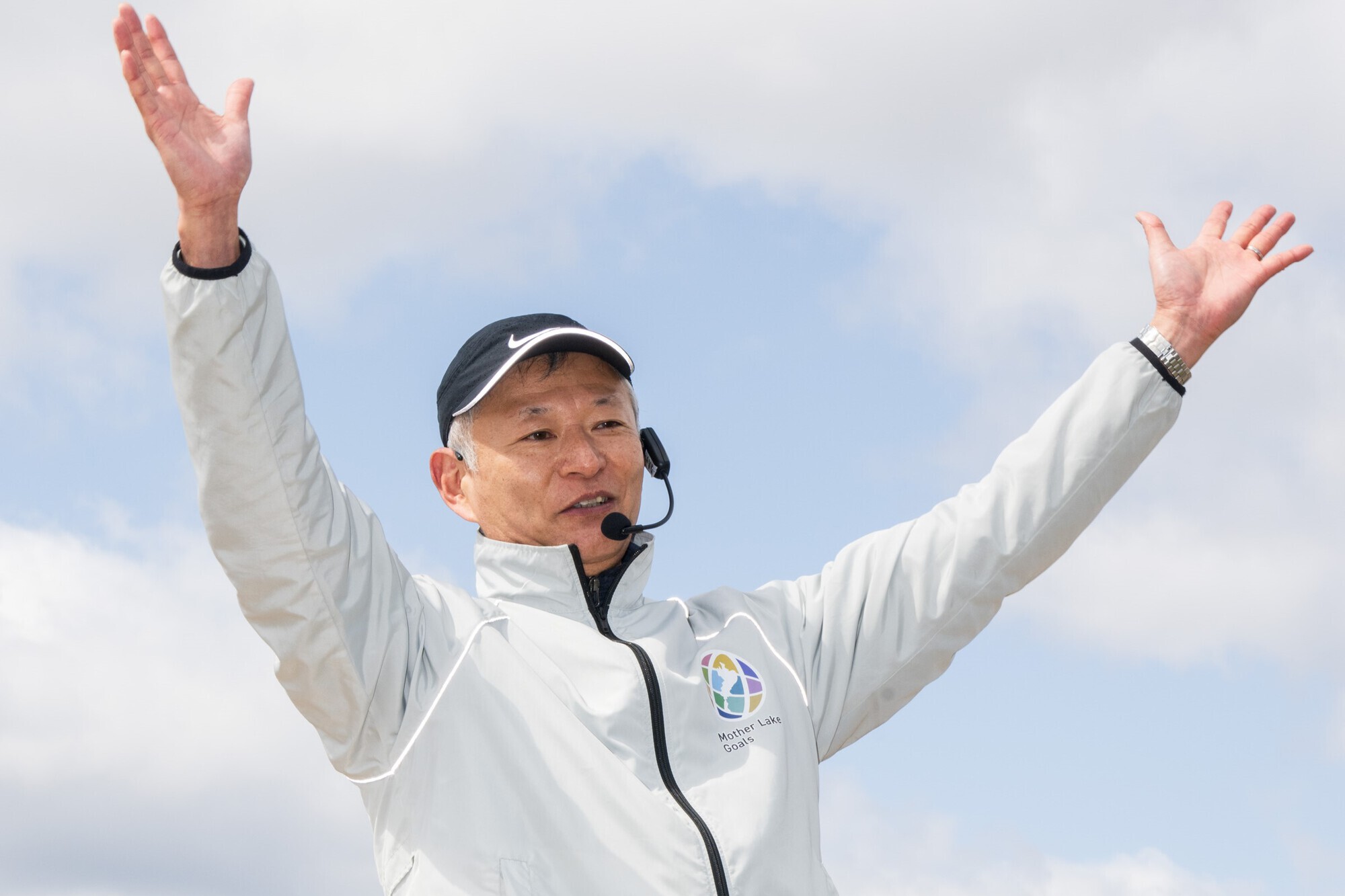 滋賀県版SDGsである【MLGs(マザーレイクゴールズ)】の推進担当を務める、三和伸彦(みわ・のぶひこ)滋賀県理事が登壇し、MLGs(マザーレイクゴールズ)を「からだ」で表現する体操【MLGs体操】を参加者全員で実践。