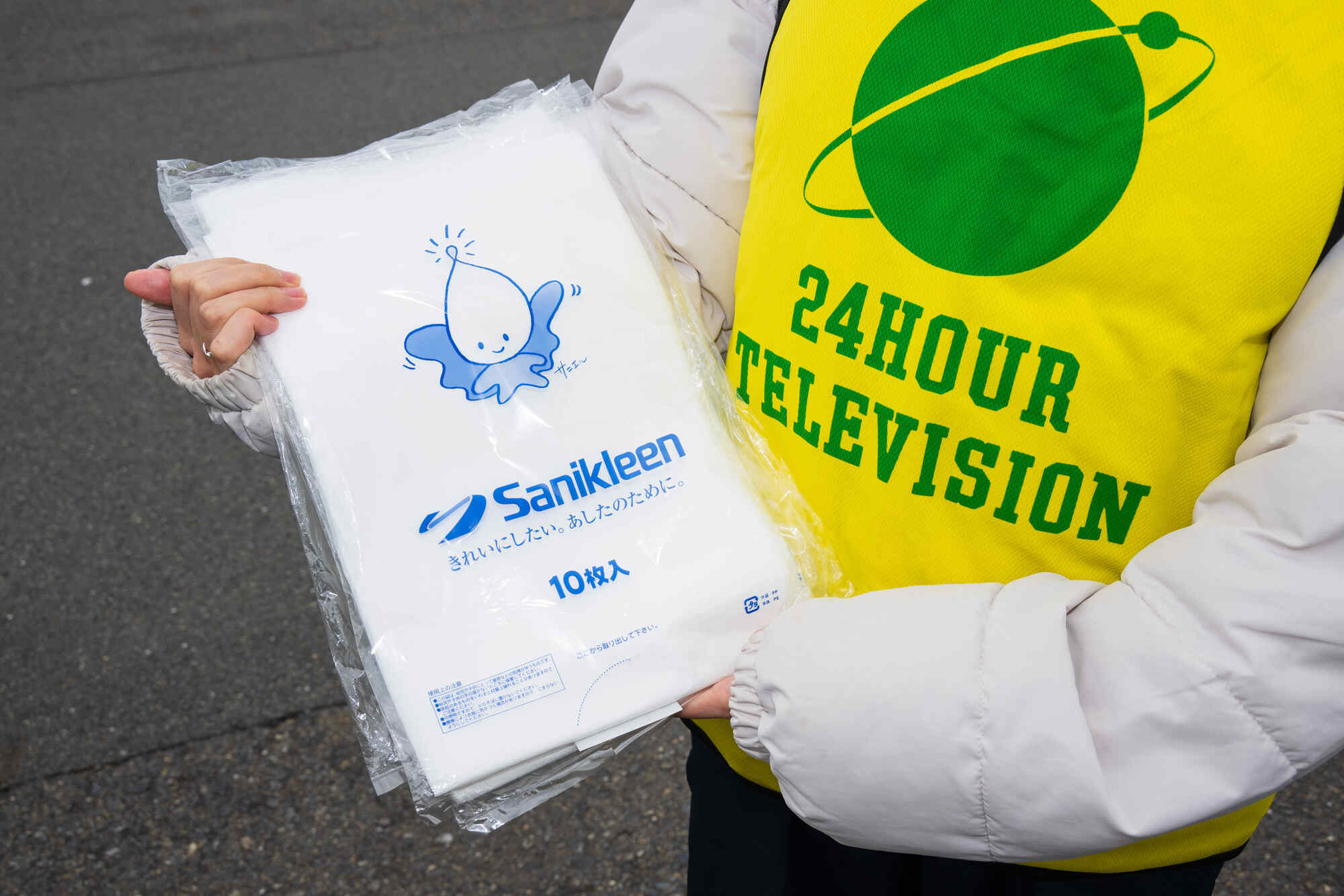 そして、清掃活動に欠かせないゴミ袋は、「株式会社サニクリーン近畿(大阪府吹田市)」から提供いただきました。燃やしてもダイオキシンの発生がなく、焼却しても有害ガスなどの大気汚染がない環境に優しいゴミ袋です。