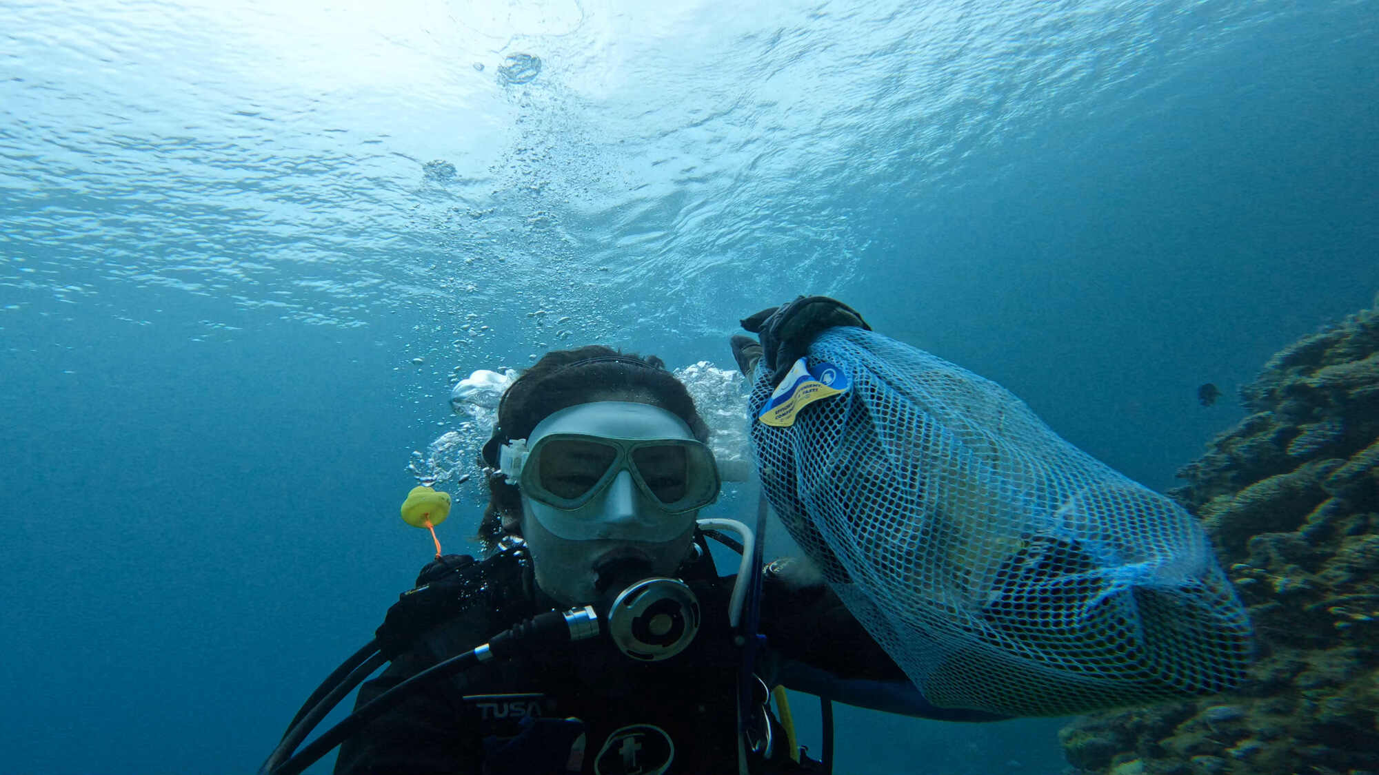 私が海中清掃活動を始めたきっかけは、ダイビングで訪れた長崎県対馬の海の中で、大量のゴミを見たことでした。ダイバーにとっては、魅力あふれる対馬の海でしたが、この旅で海岸や海中、海底の至るところに外国などからのゴミが漂着し、遺棄されている現実を知りました。これまでに潜ってきたのは、美しいという評判の高い海ばかりでしたので、対馬に来るまでは、海洋ゴミの存在を実感していませんでした。当時の写真を見返すと、ダイビングへ向かう際に乗船したフェリーで出会った若者たちの中に、“IVUSA”のTシャツを着ていた人がいることに気づき、今回の琵琶湖清掃に参加できたことは個人的にも“ご縁”を感じました。