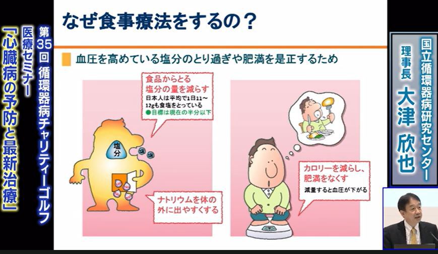 この「塩分を減らす」ということですが、皆さん病院に入られて、減塩食を食べたことがあるかもしれません。なかなか美味しくないですね。それを美味しくするため 国立循環器病研究センターの栄養士たちがその塩分を減らしたことによるおいしさの減少を、日本古来、関西のだし風味を使って補う「かるしおレシピ」を作りました。レシピ本もありますのでぜひ参考にしてください。我々の進める「かるしお」運動に参画していただく企業に対して、国循が使用認定をし、その製品が今どんどん売れています。