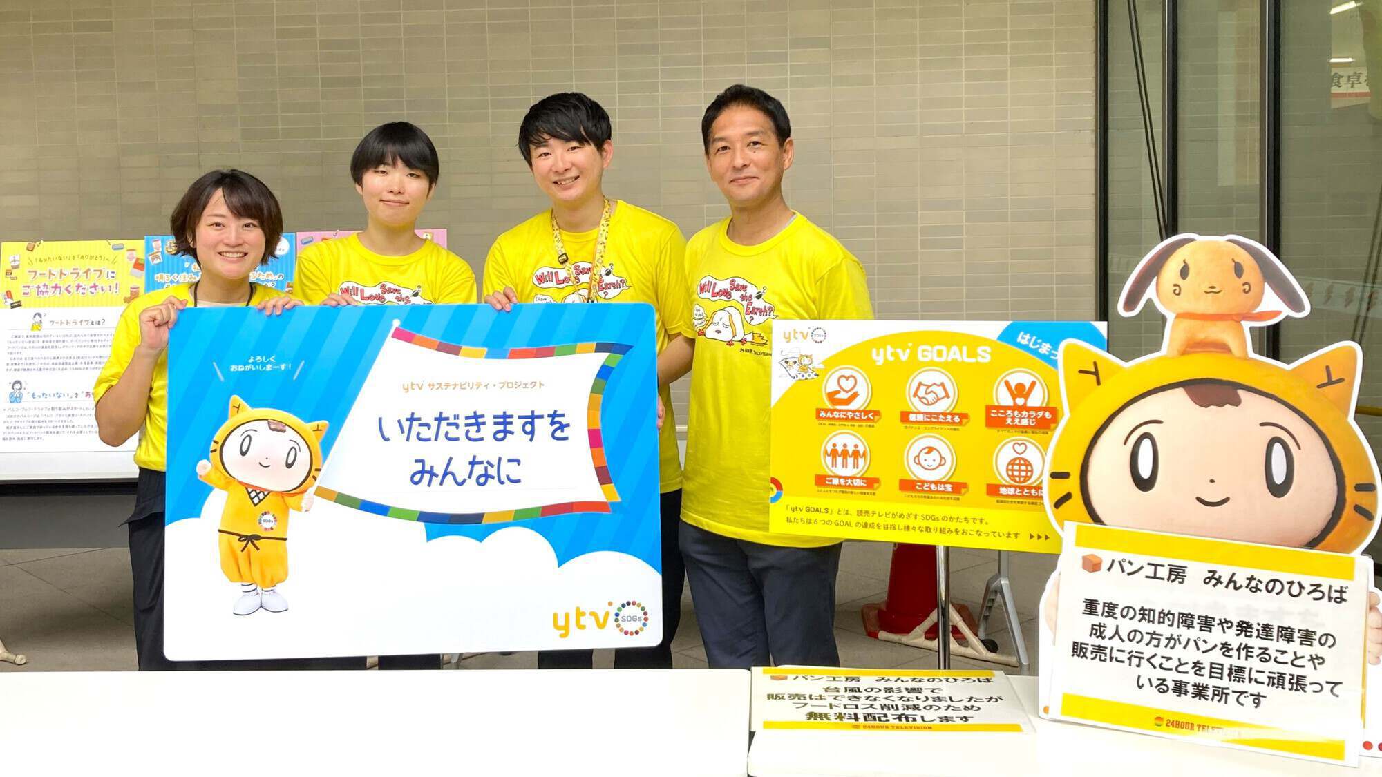 今回は、読売テレビ社屋でパンと洋菓子の出張販売の予定でしたが、台風の影響で屋外の「お祭りストリート」が中止となりました。このため、今回は作っていただいたパンを来場者へ無償で配布しました。