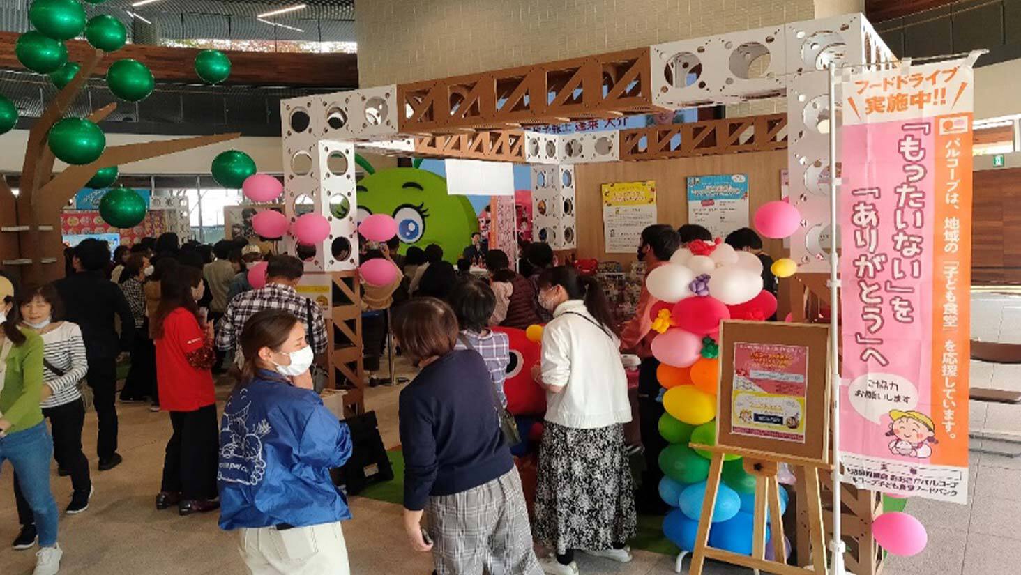 おおさかパルコープの皆さんが準備してくださった専用ブースには、フードドライブの紹介動画のほか、家族で楽しみながら学んでもらおうと昭和の風情満載の「スマートボール」を3台も配置。賞品としてそろえた、昔懐かしの「駄菓子」を目指して、連日、大人も子供も笑顔いっぱいの会場となっています。