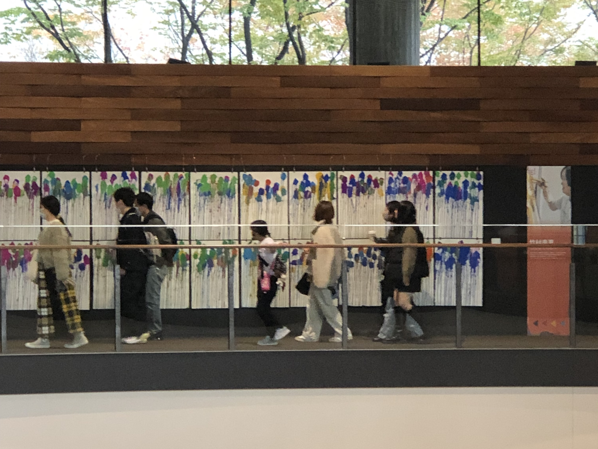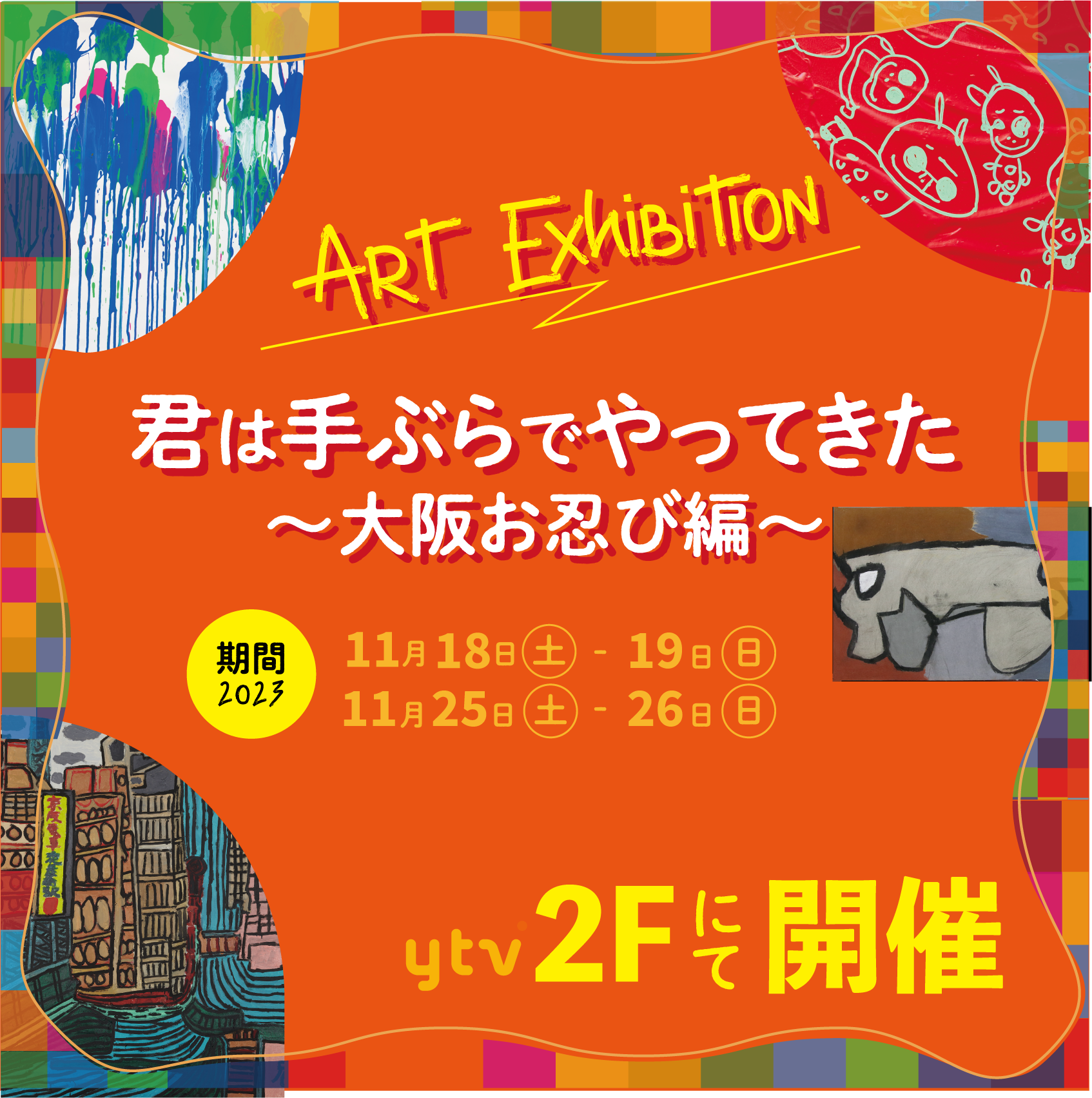 読売テレビの食フェス「シノビ―もぐもぐパーク」(2023年11月17日~19日、23日~26日開催)にて、知的障害者が描くアート作品展「君は手ぶらでやってきた〜大阪お忍び編〜」を実施しました。社屋2階の回廊を使ったアート作品の展示は読売テレビ初の試みです。