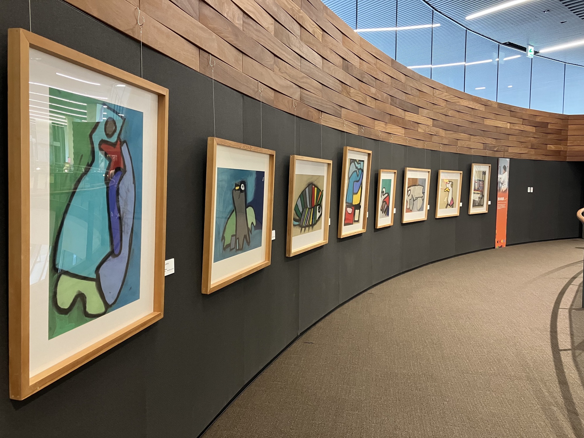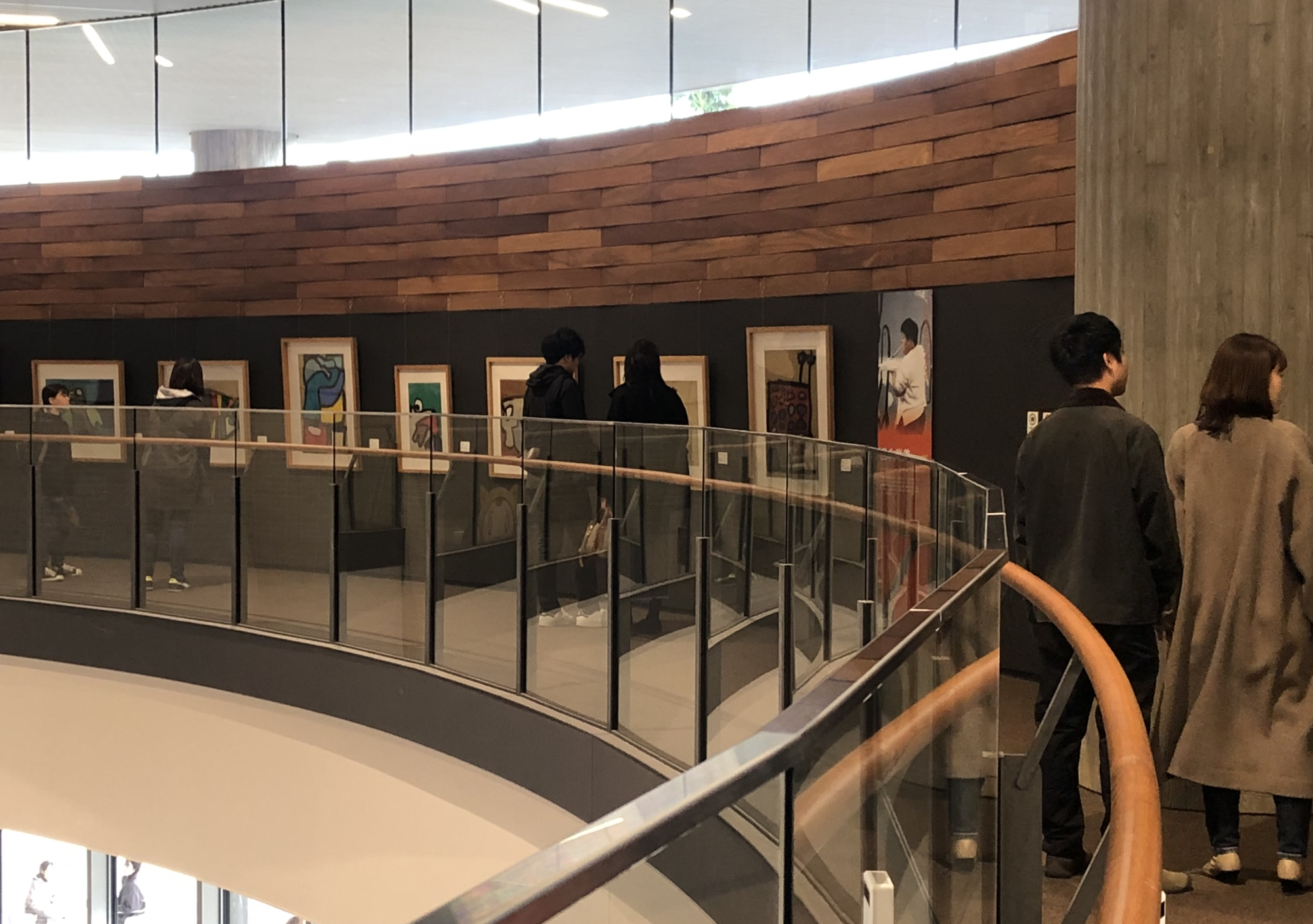 2階をぐるりと1周できる回廊に、アート作品がずらりと並びました。