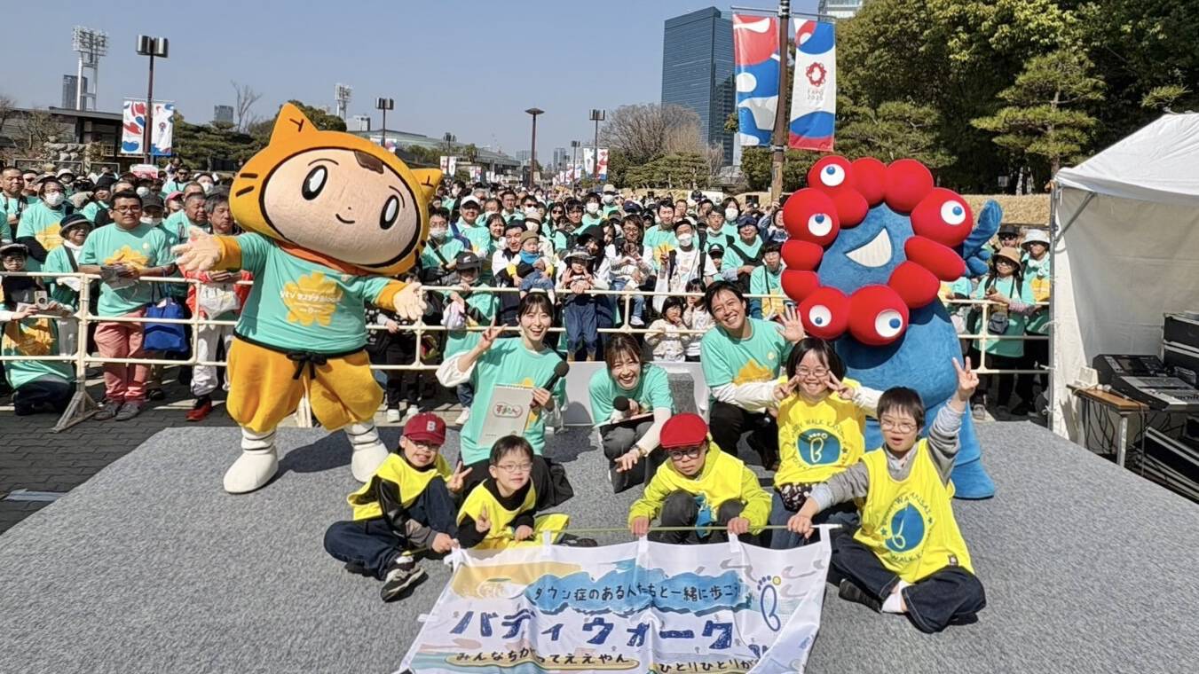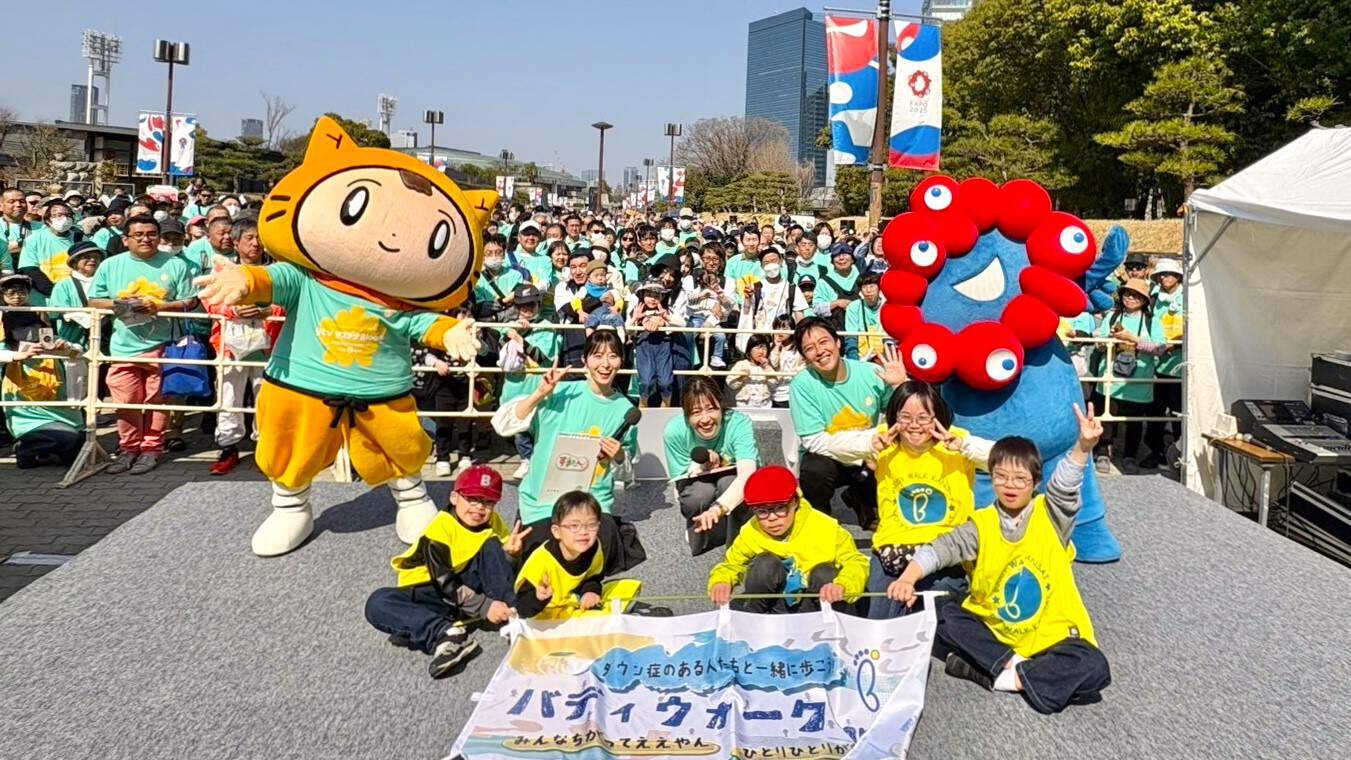 参加者の中には「ytvサステナビリティ・プロジェクト」のパートナーとして、2年前から一緒にウォーキングイベントを開催している「バディーウォーク関西」という団体があります。バディーウォークは、ダウン症のある人たちと一緒に歩く世界的なウォーキングイベントのことで、この活動にはダウン症への理解と社会的平等、多様性の尊重などのメッセージが込められています。