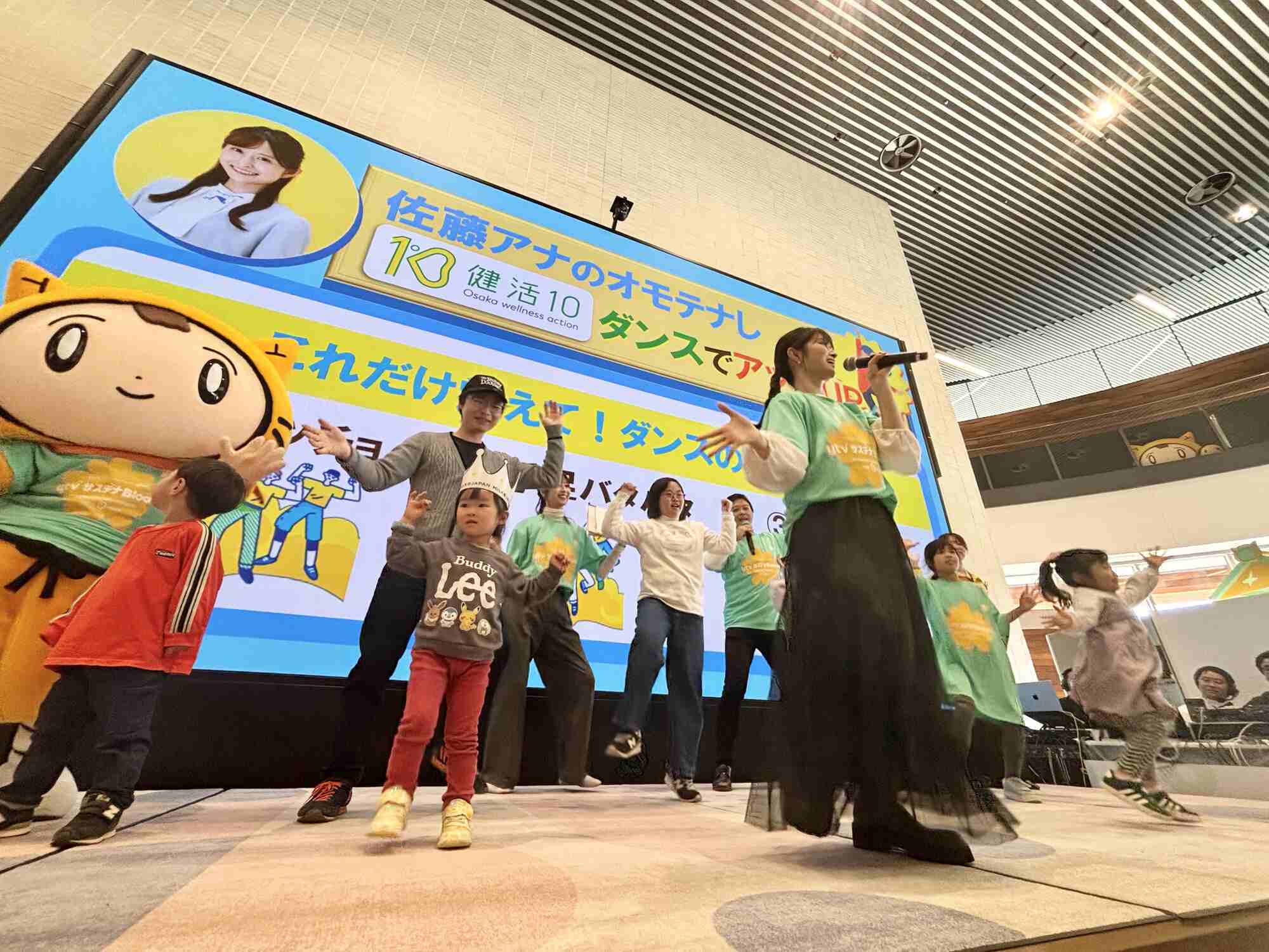 参加者とともに健活10ダンスを踊る佐藤佳奈アナ