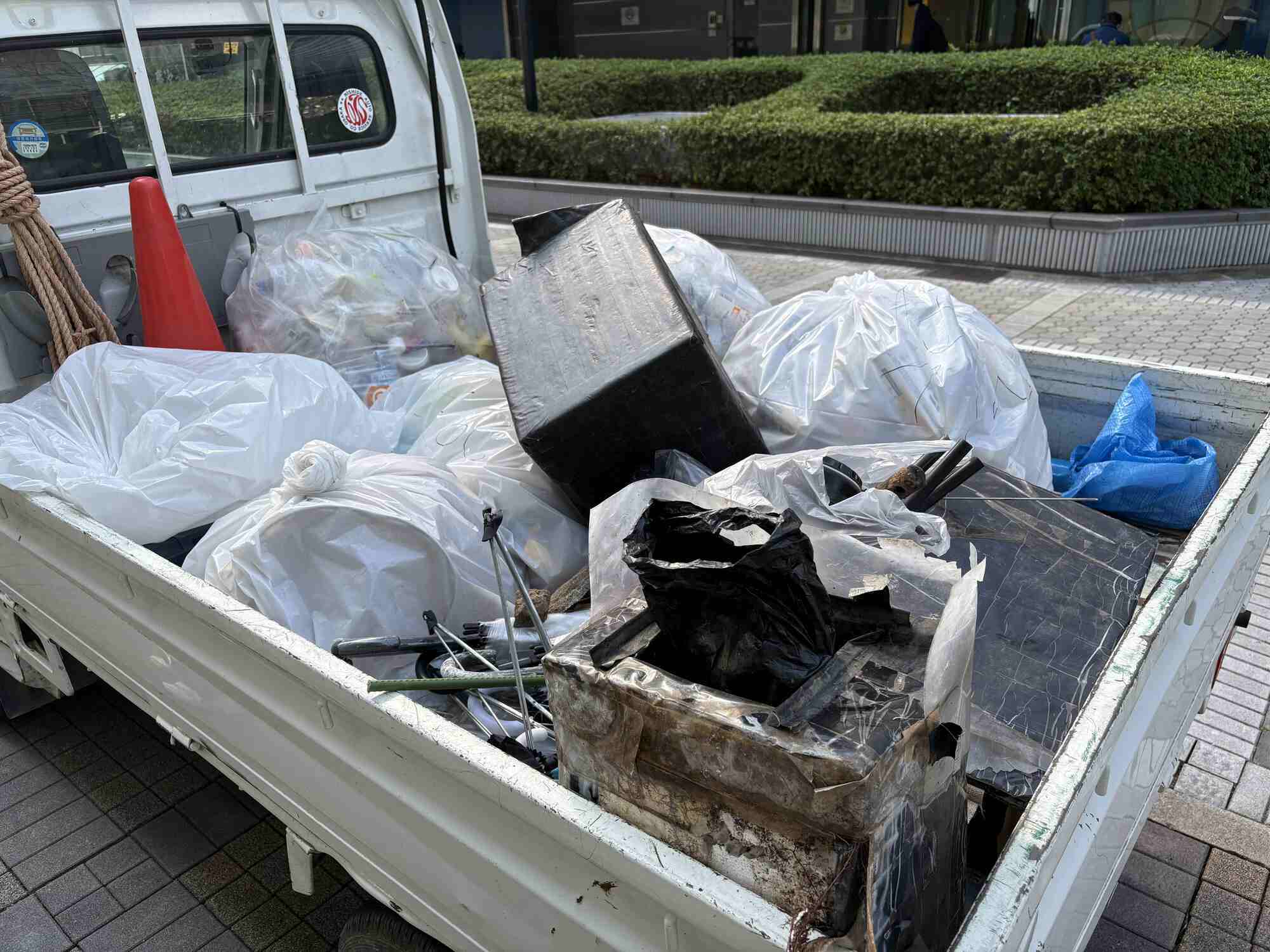 今回の「健活!城まちごみ0・ウォーク」では、 90ℓのごみ袋19袋 のごみを集めることができたほか、家電などの粗大ごみが複数あり、軽トラック2台が一杯になるなどの想像を上回る成果となりました。