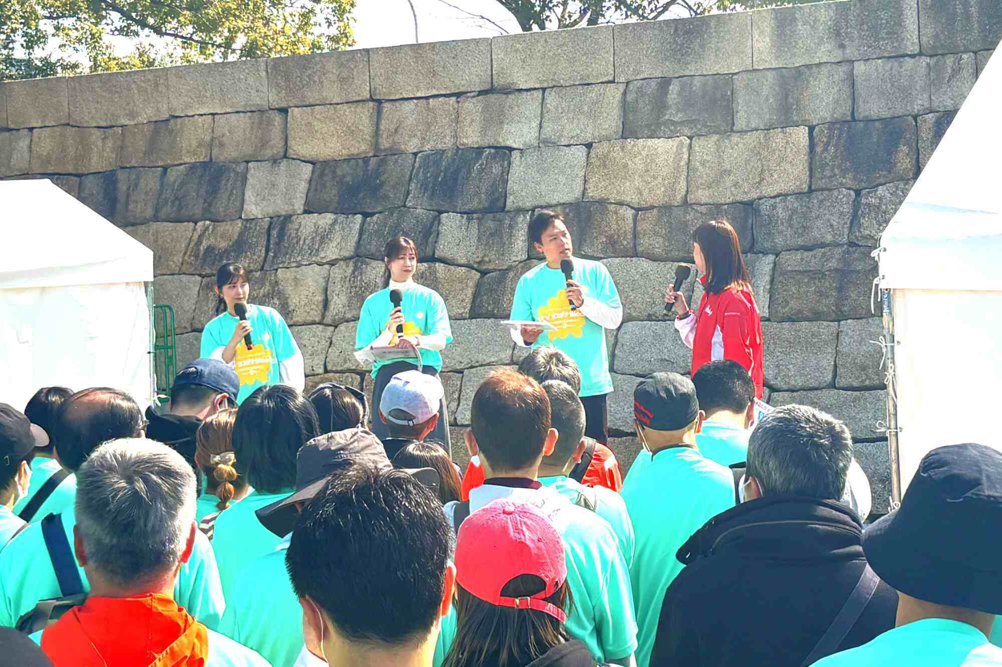 この日の天気は、春の爽やかな青空が広がる絶好のウォーキング日和(びより)。朝の情報番組「す・またん!」などの呼びかけで事前に申し込みを済ませた、およそ900人の参加者が大阪城公園の特設ステージ前に集まりました。