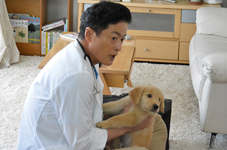 ピーチを触診するシバケン。聞けば昨日から餌もほとんど食べず、少し食べてもすぐ吐いてしまうという。しかし、これと言って悪い所は見当たらない。ピーチが少し暴れてしまい押さえようとした瞳は、シバケンの手まで押さえてしまう。瞳と手が触れてドキッとするシバケン。「散歩はいつも、あの時間に?」とついついプライベートなことを聞いてしまう。「いえ、いつもは娘が連れていくんですけど」と瞳。瞳に娘がいることが分かりガックリなシバケン。「じゃあ、ご主人もいらっしゃるわけですよね」と苦し紛れに聞いてみる。すると「主人とは去年、離婚しました」という返事が返ってきてすぐさま元気を取り戻す。そして、朝から仕事で夜まで帰れないという瞳のために、瞳の家への往診を買って出ることに。