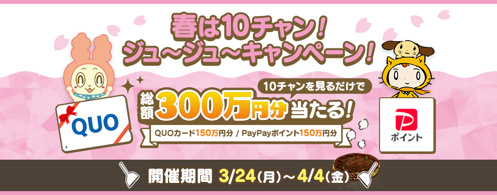 3/24(月)~4/4(金)の実施期間中、対象番組を5分視聴毎に獲得できるポイントを集めて
