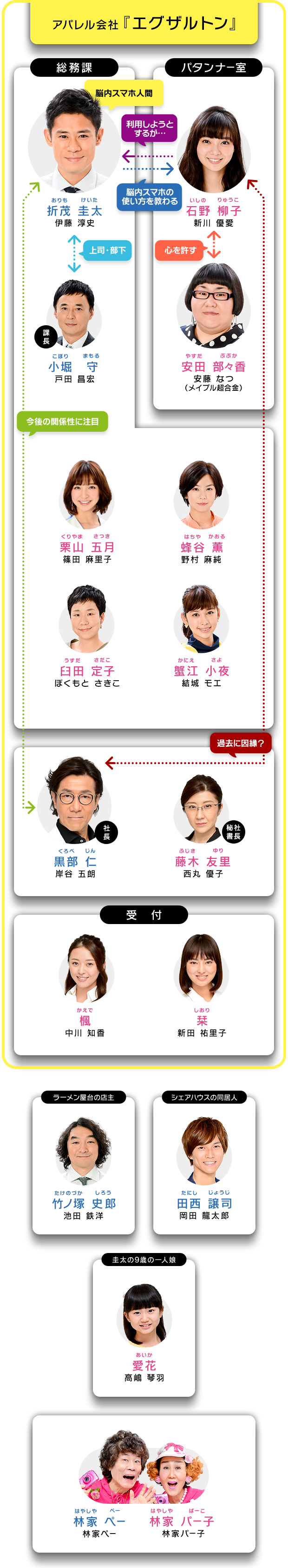 『エグザルトン』 総務課勤務。 新入社員。圭太にシンパシーを感じ、何かと絡もうとする。
