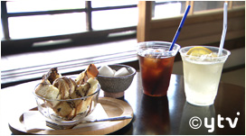 隣のお店で淹れたての珈琲も味わえます。