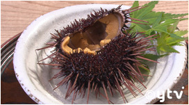 活き赤ウニ一貝 630円(6月~9月初旬)