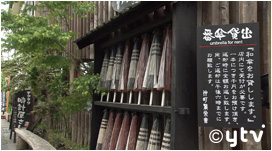 商店街にぴったりな番傘を借りることができます。