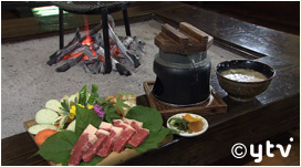 古民家を再生したお宿の囲炉裏で頂く