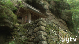 本殿に行くには幅およそ45センチの隙間を通らなければならない、