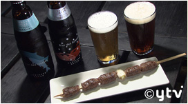 浴衣でぷらぷら! 温泉街の但馬牛「串焼き」