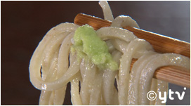 毎朝、石臼で挽いた蕎麦そして地元で採れたワサビを