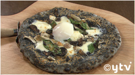 食用の「竹炭」を練りこんでいる黒いピザ。必見です!