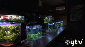 昼間はカフェ、夜になると幻想的な熱帯魚バーに大変身!