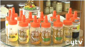 約10種類のハチミツを常時販売する養蜂場の直営店。