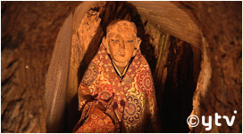 樹齢1200年の生きた木に直接彫られた「生木地蔵尊」。