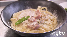 本格うどん店の絶品「釜玉カルボナーラ」!