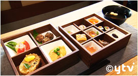 料理卓の中央に源泉が流れ込む「温泉卓」で会席料理を