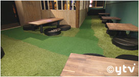 2階は人工芝生になっているのでゆっくりくつろげます。