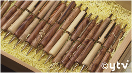 地元の高級木材・吉野杉の廃材を利用して作った木製ペンが購入できます。