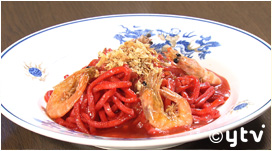 パプリカなどの高原野菜で真っ赤になったB級グルメです。