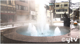 約60℃の温かい噴水は、宇奈月温泉街のシンボルです。