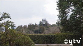 敷地内にある丸い石からは、江戸時代と変わらない美しい松江城が見えます!