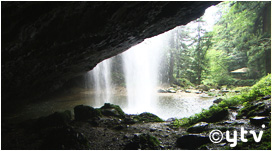 滝の向こう側が岩窟になっており、滝を裏側から見ることができるんです!