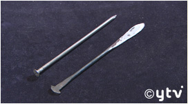 五寸釘をペーパーナイフに作り替える刃物作り体験です。