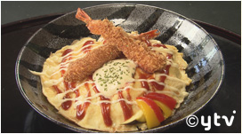 見城亭では、まぐろの代わりにエビフライが乗っています!