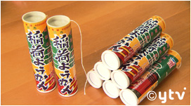 花火の形をした稲荷ようかんは、底から押し出し紐で切って