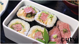 オーブンでじっくり焼いた自家製のローストビーフをお寿司に!
