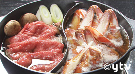 「松葉ガニのカニすき鍋」と「但馬牛すき焼き鍋」を