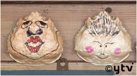 お客さんの似顔絵を描いて作った「かにおめん」!