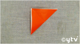 2、正方形に折り曲げてから三角形に折り、もう一回折って小さな三角形にします。