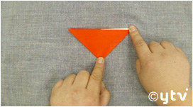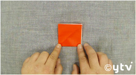 3、三角形ができたら、それを広げて正方形にします。【反対側も同様】