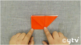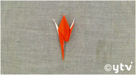 7、折り曲げた部分を上に折り上げ、顔と尻尾の部分をつくります。