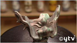 数々の作品の中で気になるのが、般若のお面のような形の「頬鎧盃」!