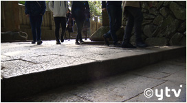 そのからくりは階段を登る途中で1段下がる段にあります。