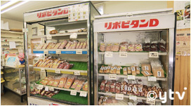 昔ながらの薬局の一角には、なんとベーコンやハムが!