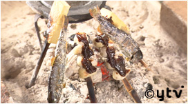 地熱蒸気で3時間じっくり蒸し、冷ました後炭火で炙ります。