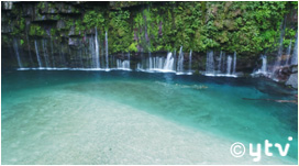 遊歩道を20分程歩くと目前に現れるのが、エメラルドグリーンに輝く「雄川の滝」!