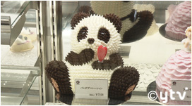 クマの形をしたスポンジに、一粒一粒ホイップクリームを細かく絞っていくという